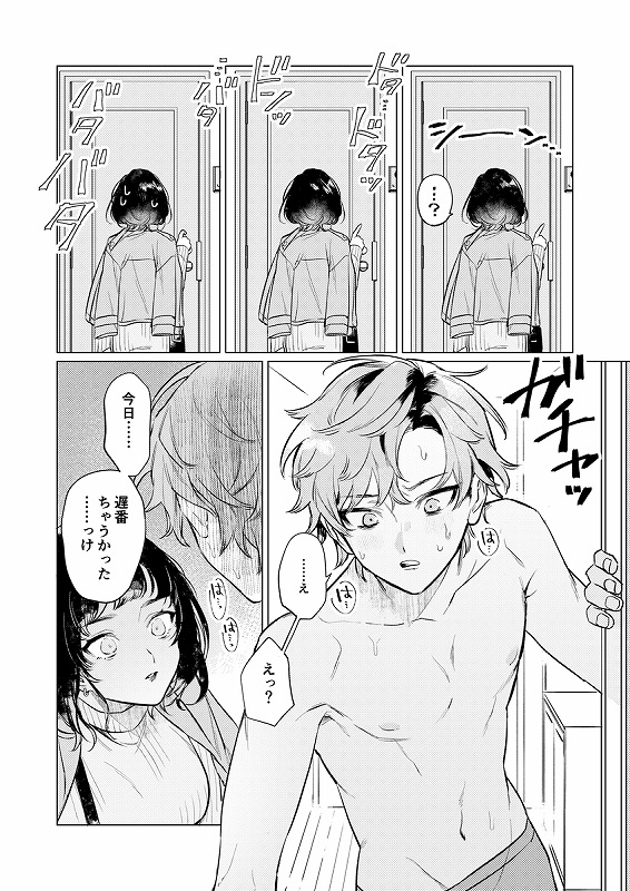 玄関から顔を赤らめて上半身裸の彼が。